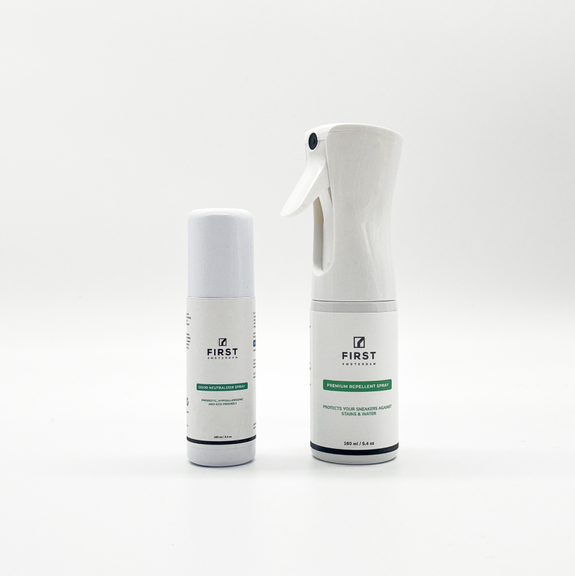Gebruik de waterafstotende spray aan de buitenkant en de geurspray aan de binnenkant.