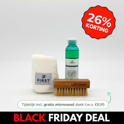 Fill a container with lukewarm water and dip the brush in it. Then add the product to the brush and dip it in the water again. Shake off the water and brush the shoe until the product starts to foam well. Then dry the shoe with the microfiber cloth and your shoes will be like new again!
